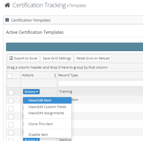 From here you can view/edit the template details or create an assignment letting the employee know they need to get the certification.