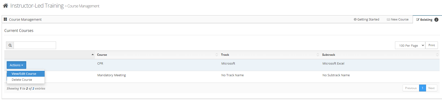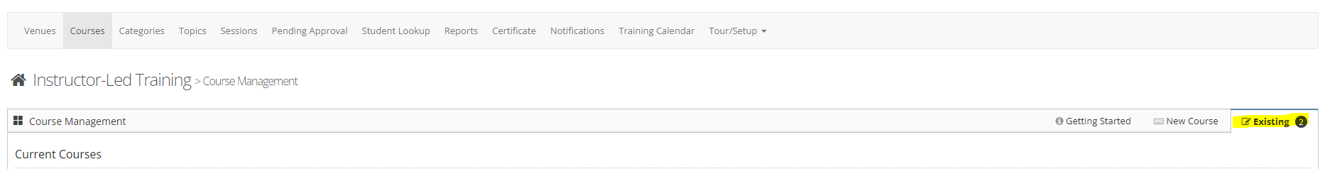 Step 5: Select the 'Existing' tab to manage courses that you have already configured.