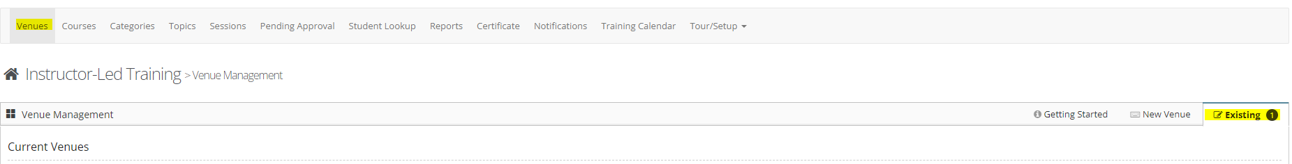 The Classroom Training Cloud gives you the ability to create and manage Venues associated with your Classroom Training. Follow the steps below to use this option.