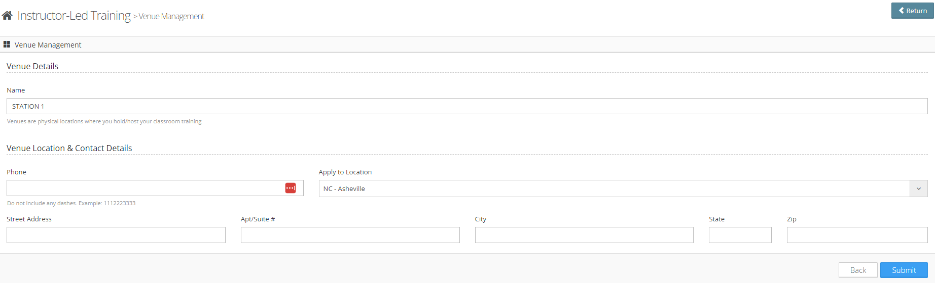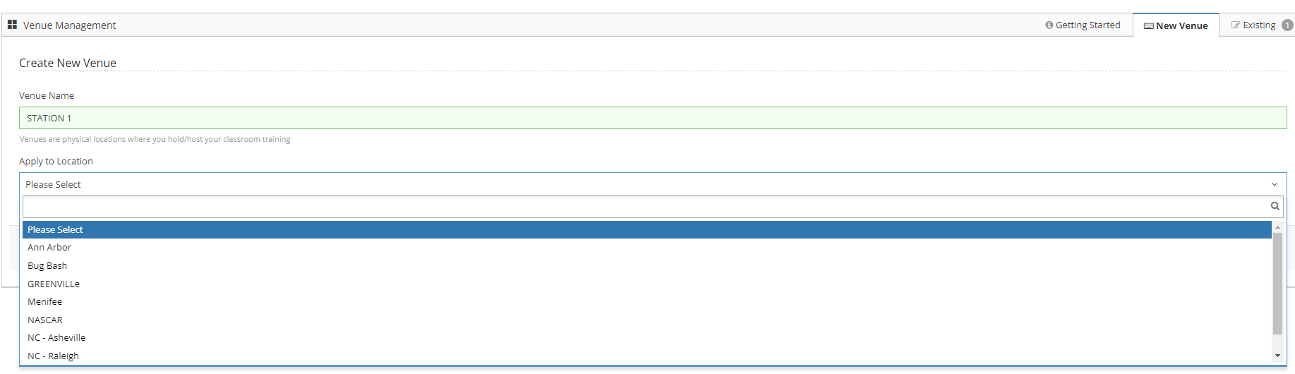 The Classroom Training Cloud gives you the ability to create and manage Venues associated with your Classroom Training. Follow the steps below to use this option.
