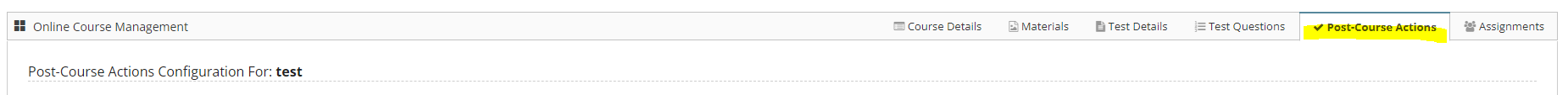 Step 9: Post Course Actions can be added from the 'Post-Course Actions' tab.