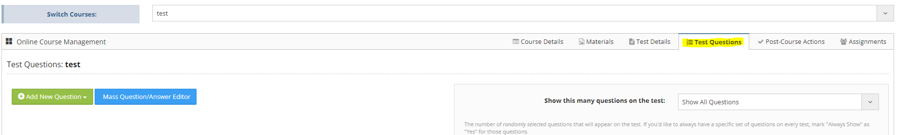 Step 8: Test Questions can be added from the 'Test Question' tab.