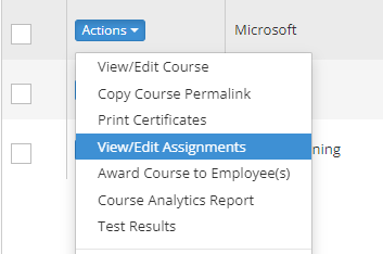 Step 4: Select 'View/Edit Assignments' from the Actions button next to your course.