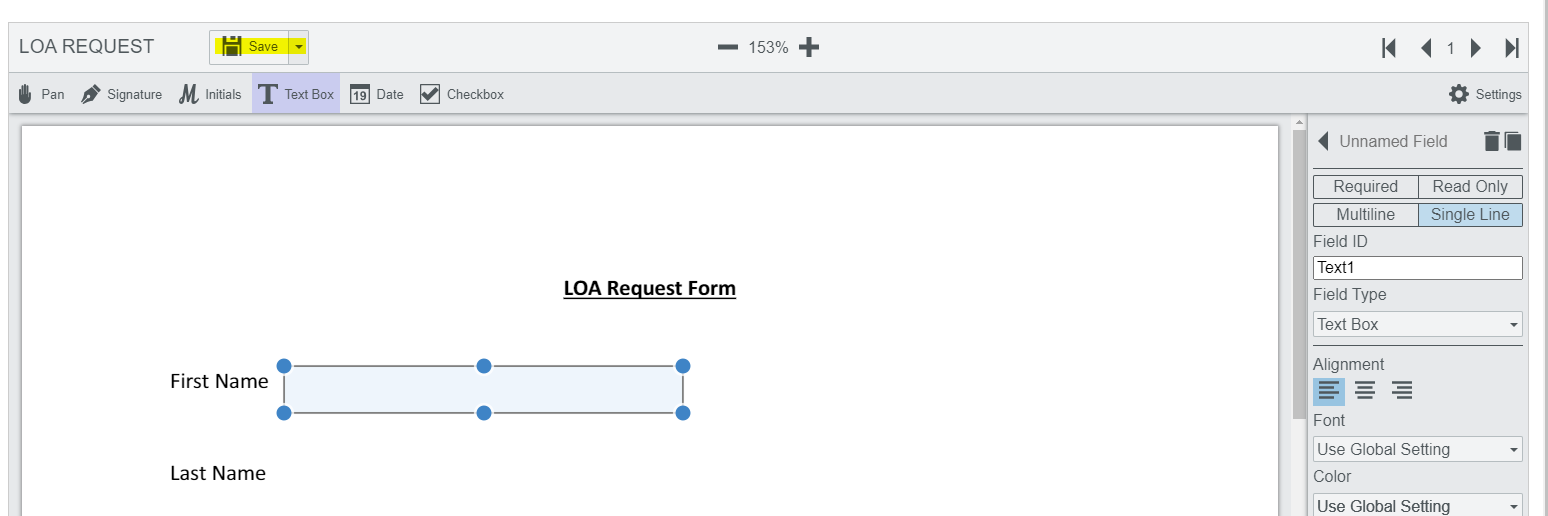 Step 8: When you have completed filling out the fields select the save button to save the form