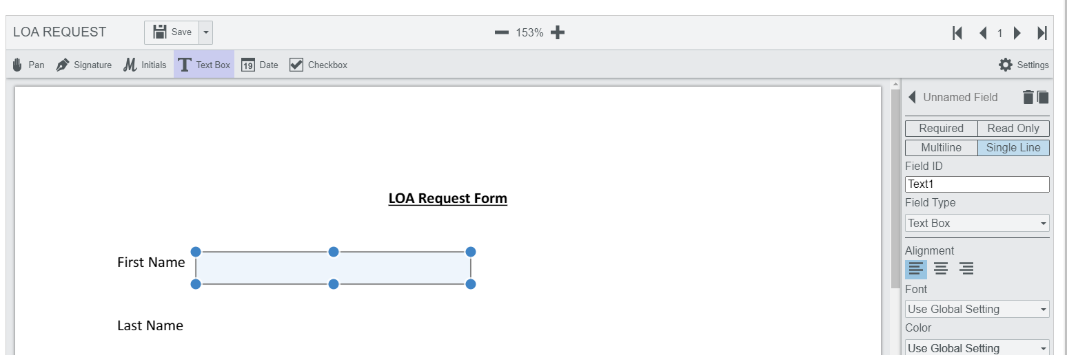 Step 7: Drag your desired form field over the area and configure it