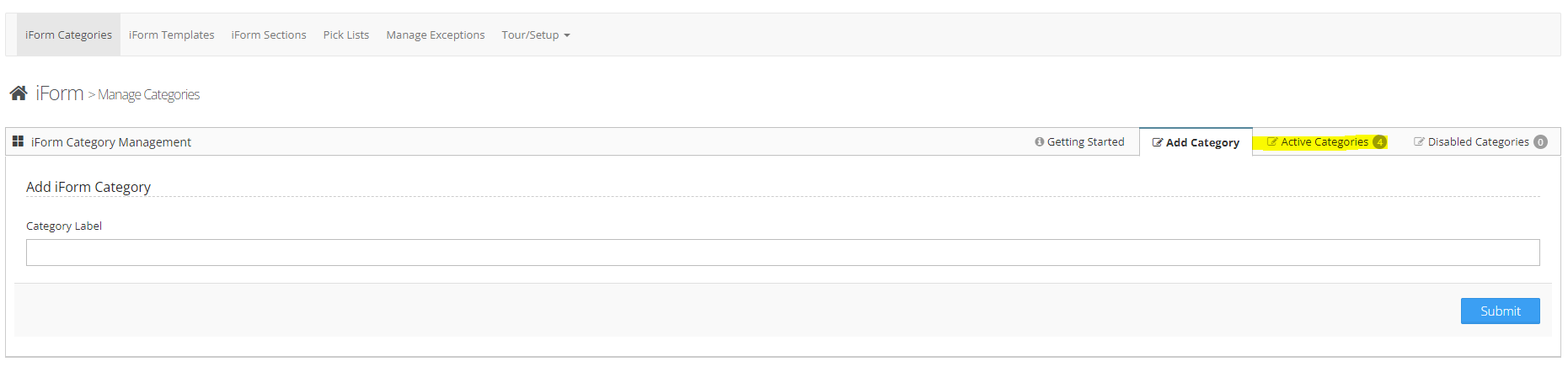 Step 1: Select the 'Active Categories' tab to interact with configured categories
