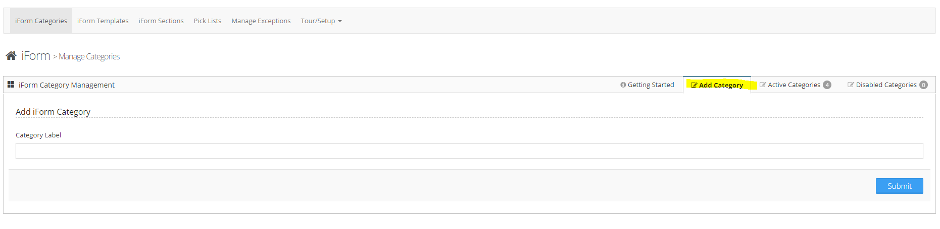 The categories are where the iForm will be stored. For example a Payroll related category could contain all your payroll iForms