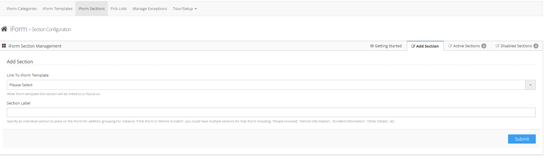 To configure your iForm sections follow the steps below.