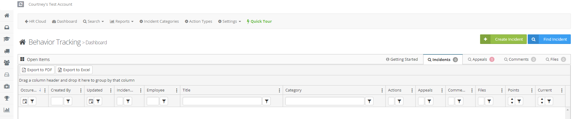 To add a new behavioral tracking incident and work with entered incidents follow the steps below.