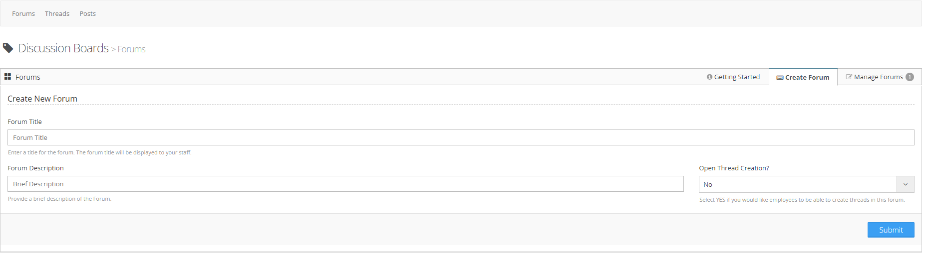 To add forums to discussion boards follow the steps below.