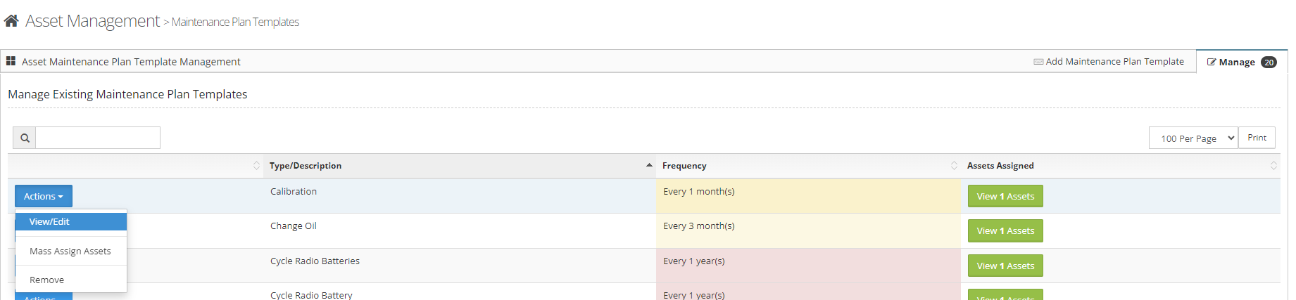 Step 8: After selecting the 'Manage' tab you can select View/Edit, Mass Assign, or Remove from the actions button next to the plan