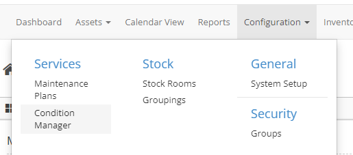 Step 5: Select 'Condition Manager' from Configuration in the in-app menu