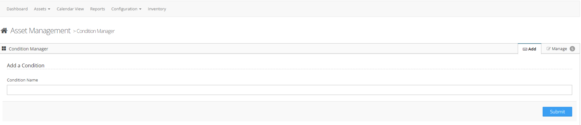 Step 6: Select the 'Add' tab to enter a new condition or the 'Manage' tab to interact with a configured condition