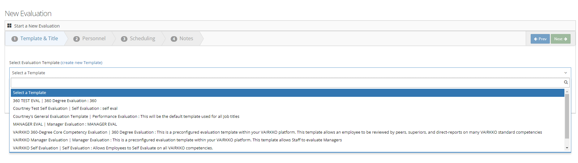 Step 5: Select the evaluation template you want to use