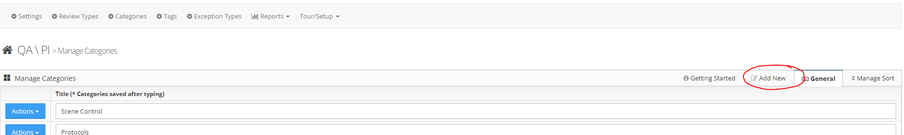 Step 5: Select the 'Add New' tab to create a new category or the 'General' tab to interact with created categories