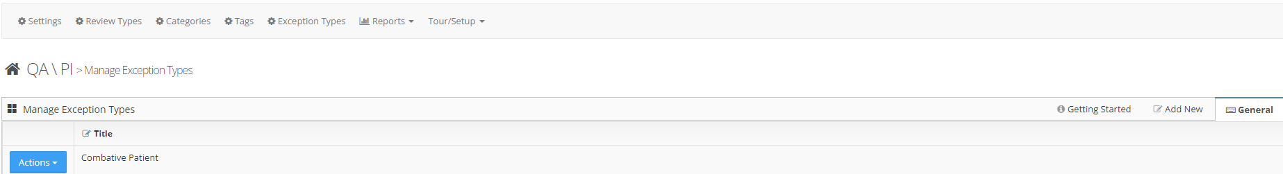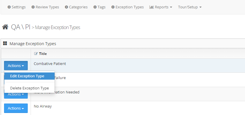 Exception types are used to provide a reason why something was not done. For example, a combative patient or equipment failure.
