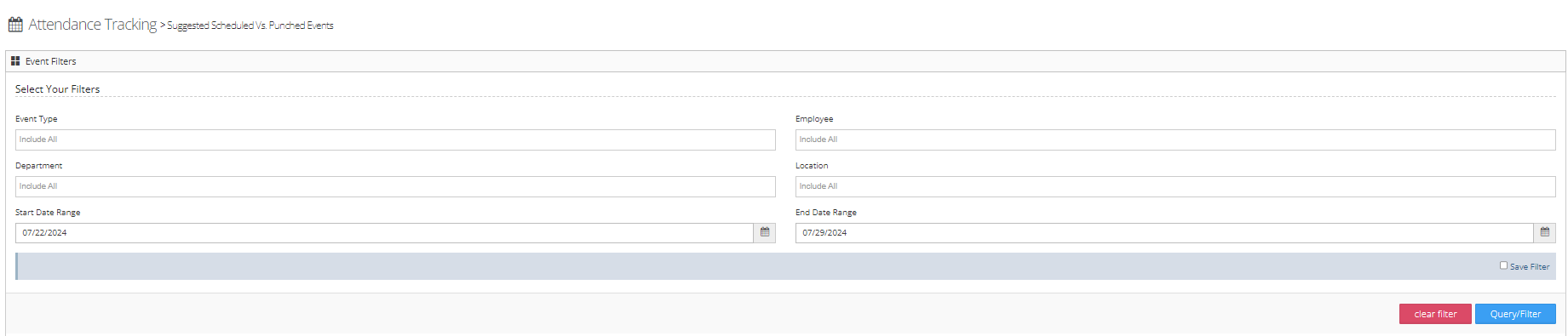 A scheduled vs. punched event compares the employee's schedule to their punch history. For example, if an employee clocks in late, clock out early, or misses a punch it will show in this area. By selecting the process button it reduces the amount of information needed to complete the event.