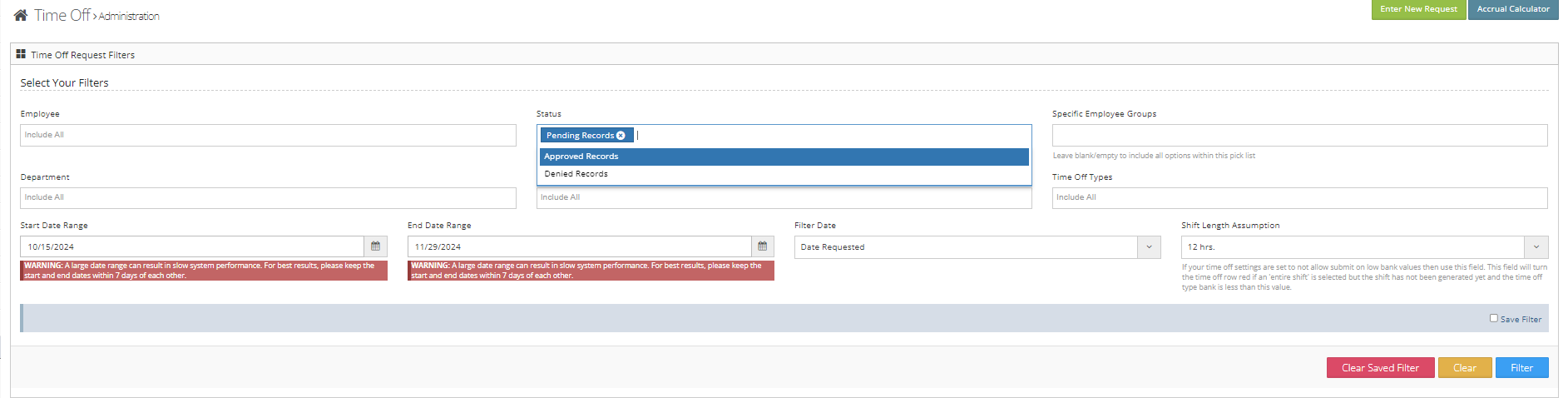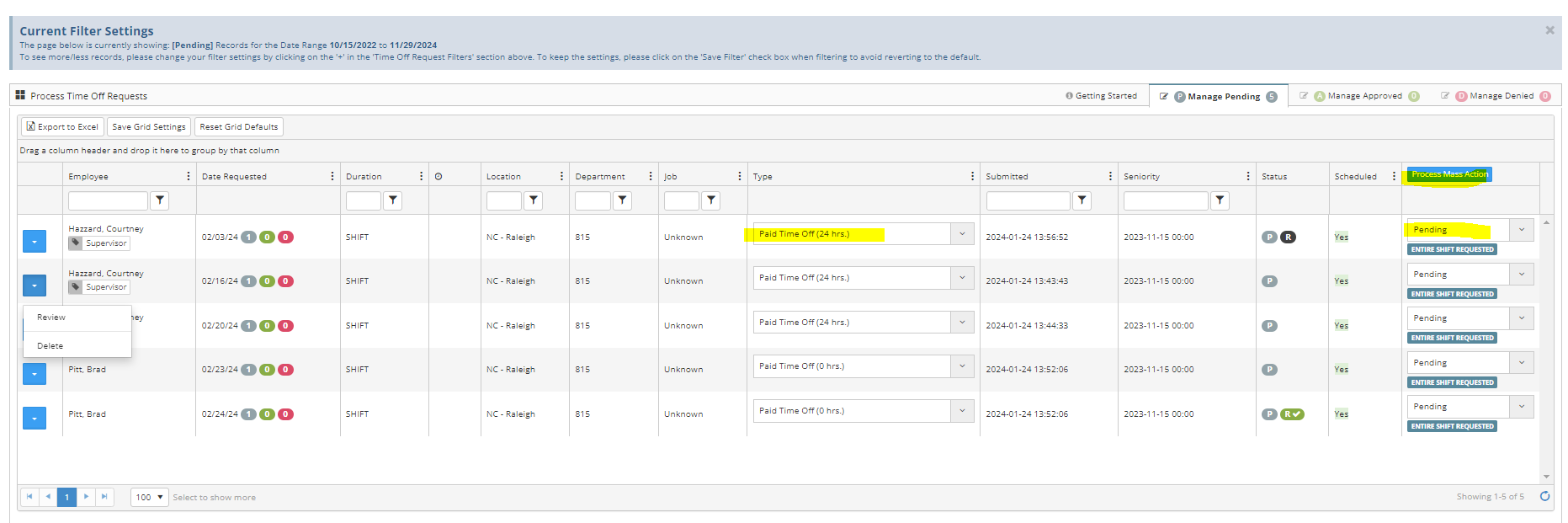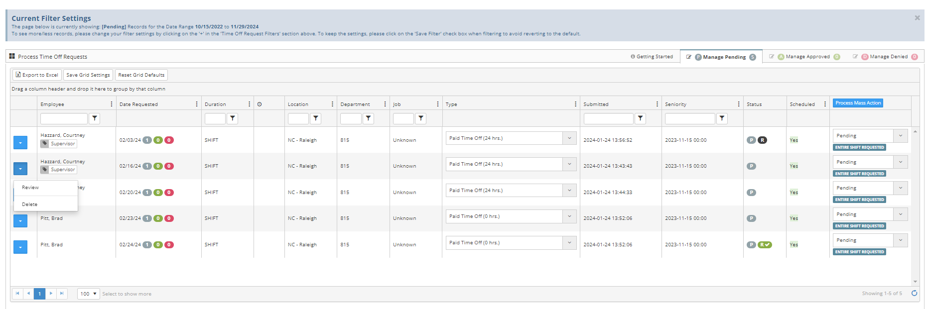 Step 5: Depending on your filter criteria you can select specific tabs to see pending, approved, or denied request
