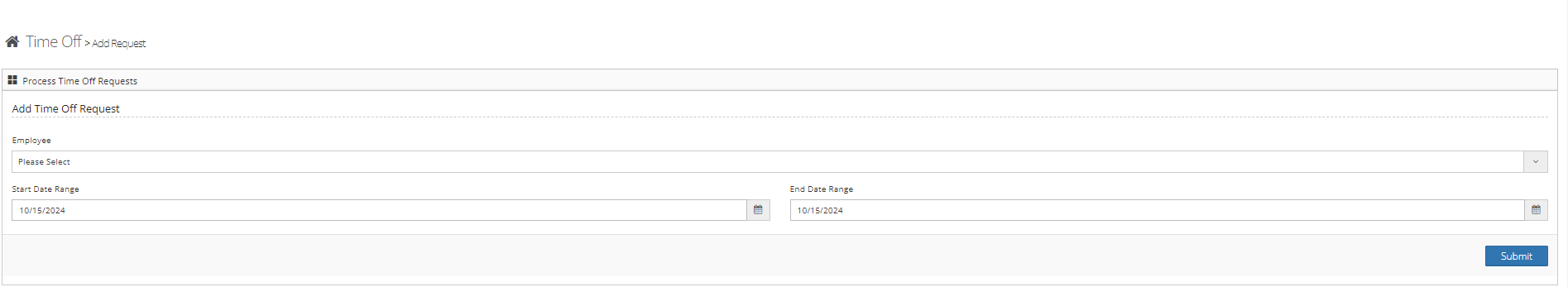 To add a time-off request for an employee follow the steps below.
