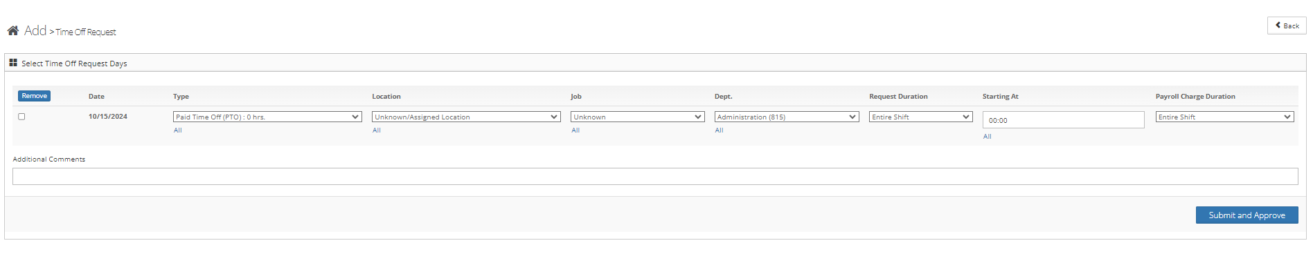 Step 6: Enter the time-off information to submit and APPROVE the request