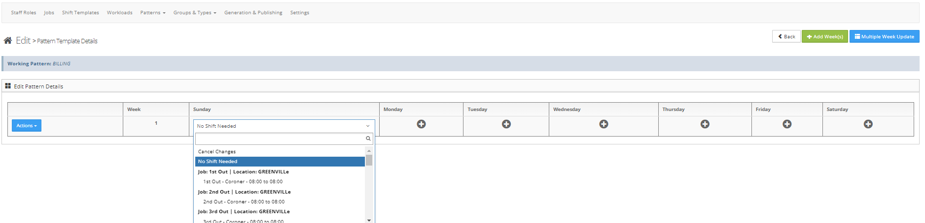 Step 1: Select the + sign to select the Shift Template to add to that day