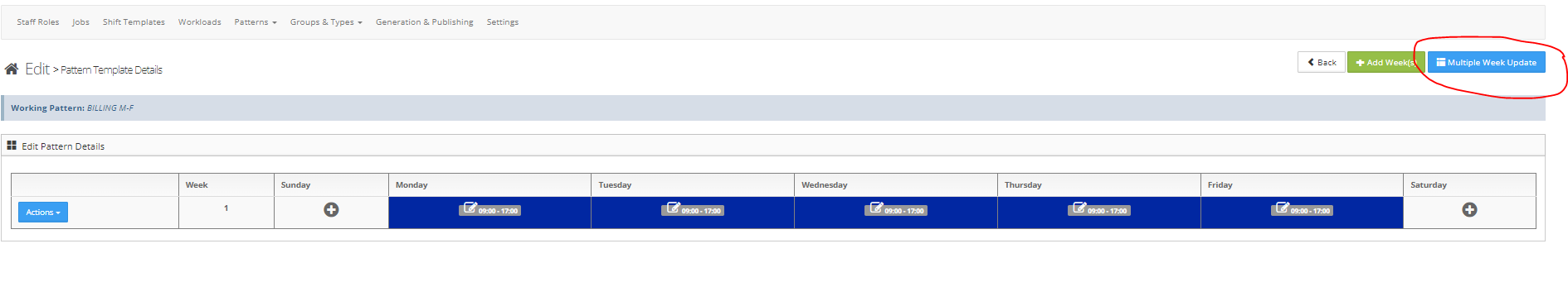 - To make changes to multiple weeks use the Multiple Week Update function
