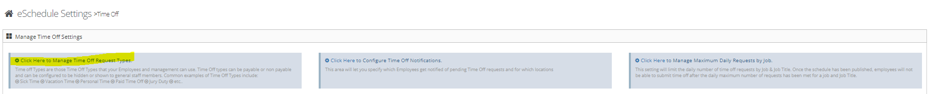 Step 5: Select Click Here to manage time off types