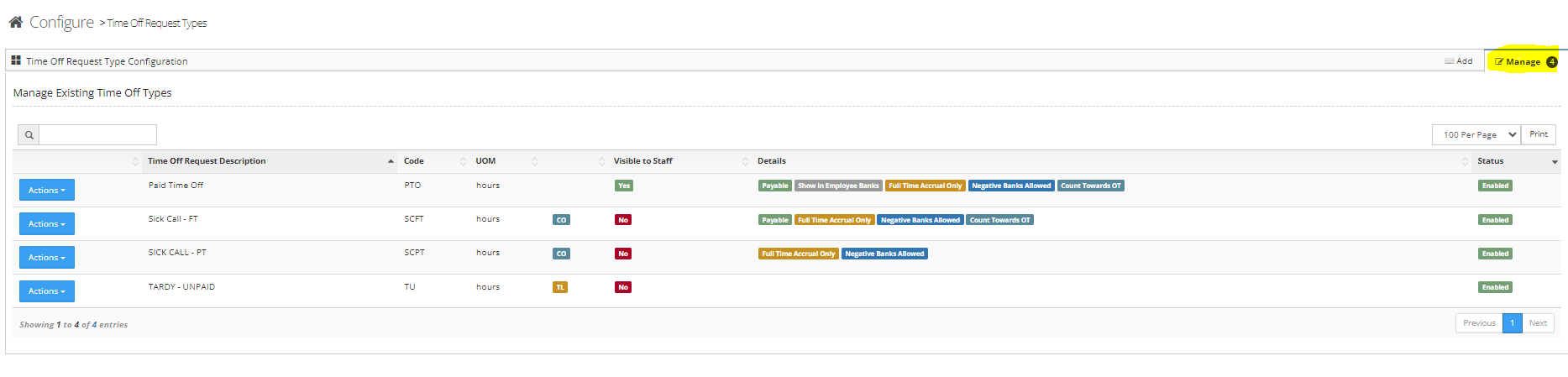 Managing Time Off Types