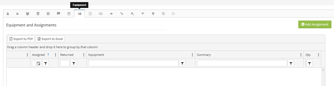 Step 5: From this tab, you can see all assigned equipment and assets
