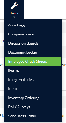 Step 2: Select 'Employee Checksheets' from the in-app menu