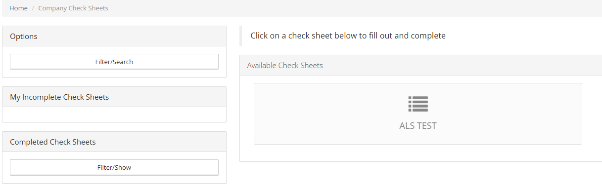- From the options area, you can search for a specific checksheet to submit. The incomplete checksheet area shows you all the checksheets you have yet to finish. The completed checksheet area shows you all the completed checksheets that have been submitted by vehicle.