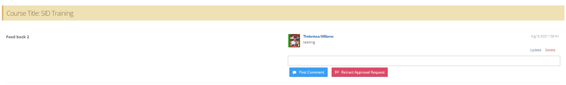 Step 4: To submit a post-course action for approval insert your file in the stripped area then press the submit for approval button. Listed above the stripped area is what needs to be completed and uploaded to complete the action.