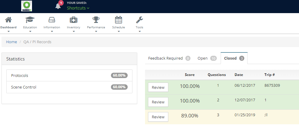 Step 4: Select 'Review' next to the incident you want to view.