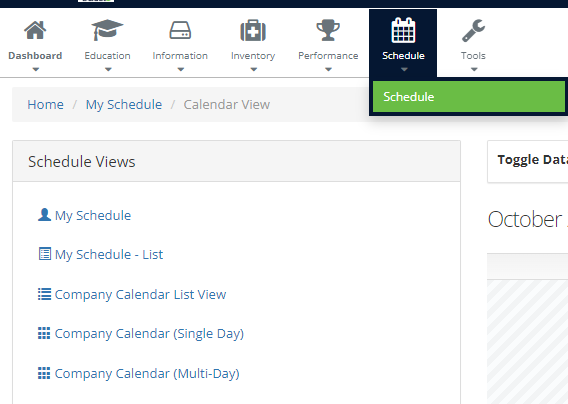 Step 3: To change your schedule view to list view or to view the company calendar select which view you wish to interact in the 'Schedule Views' pod