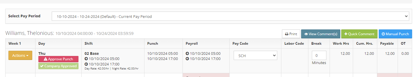 Step 5: Ensure the hours associated with the shift are correct and then press the 'Approve Punch' button