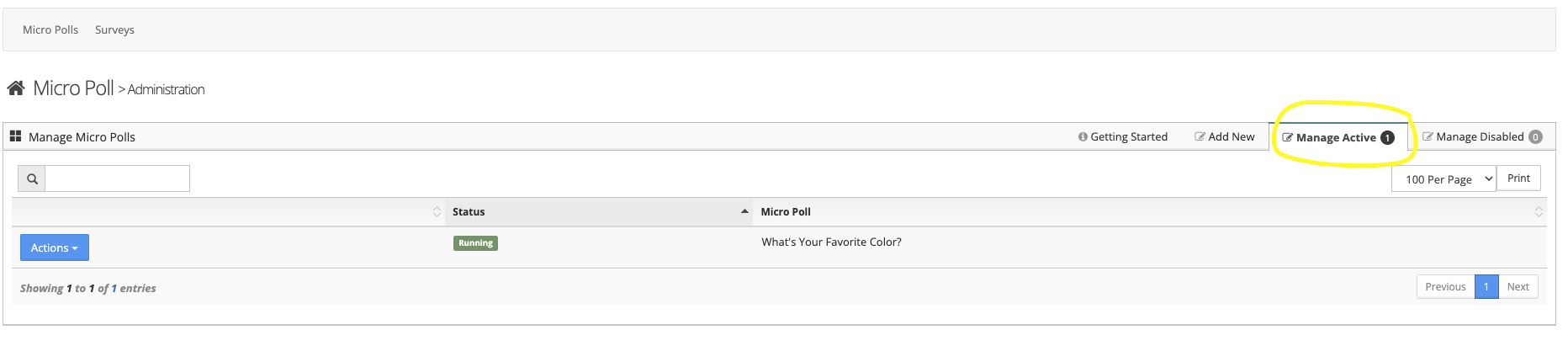 Step 2: From the actions button next to the Poll you can View/Edit the poll, update poll answers, view poll responses, or remove the poll