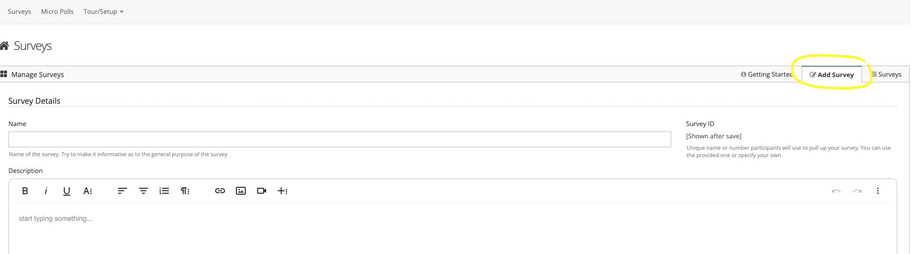 Step 5: Select the 'Add Survey' tab