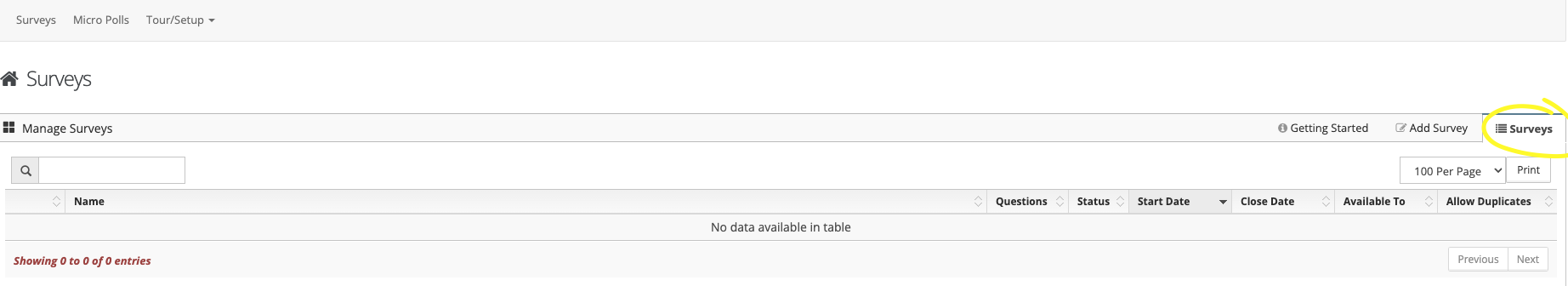 Step 1: Select the 'Surveys' tab