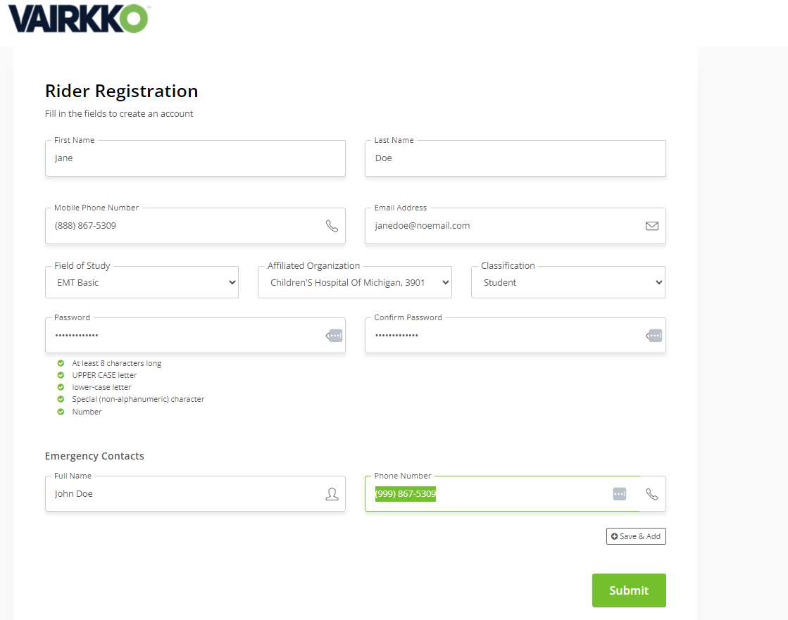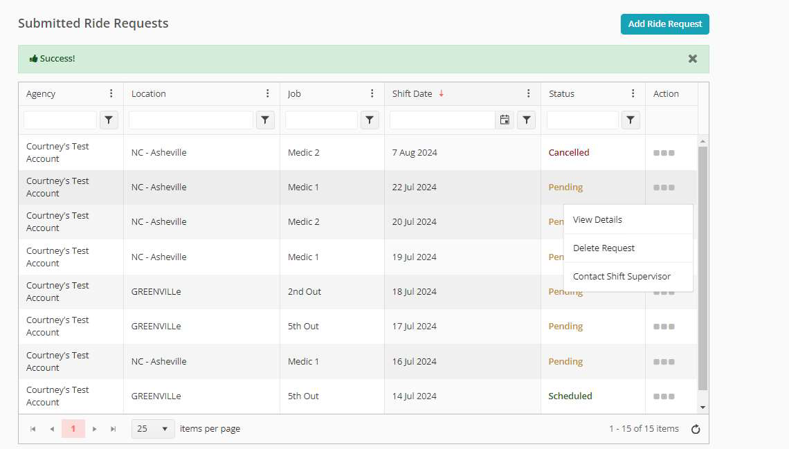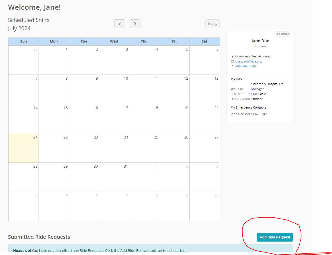 Step 3: To add a ride request, select ‘Add Ride Request’