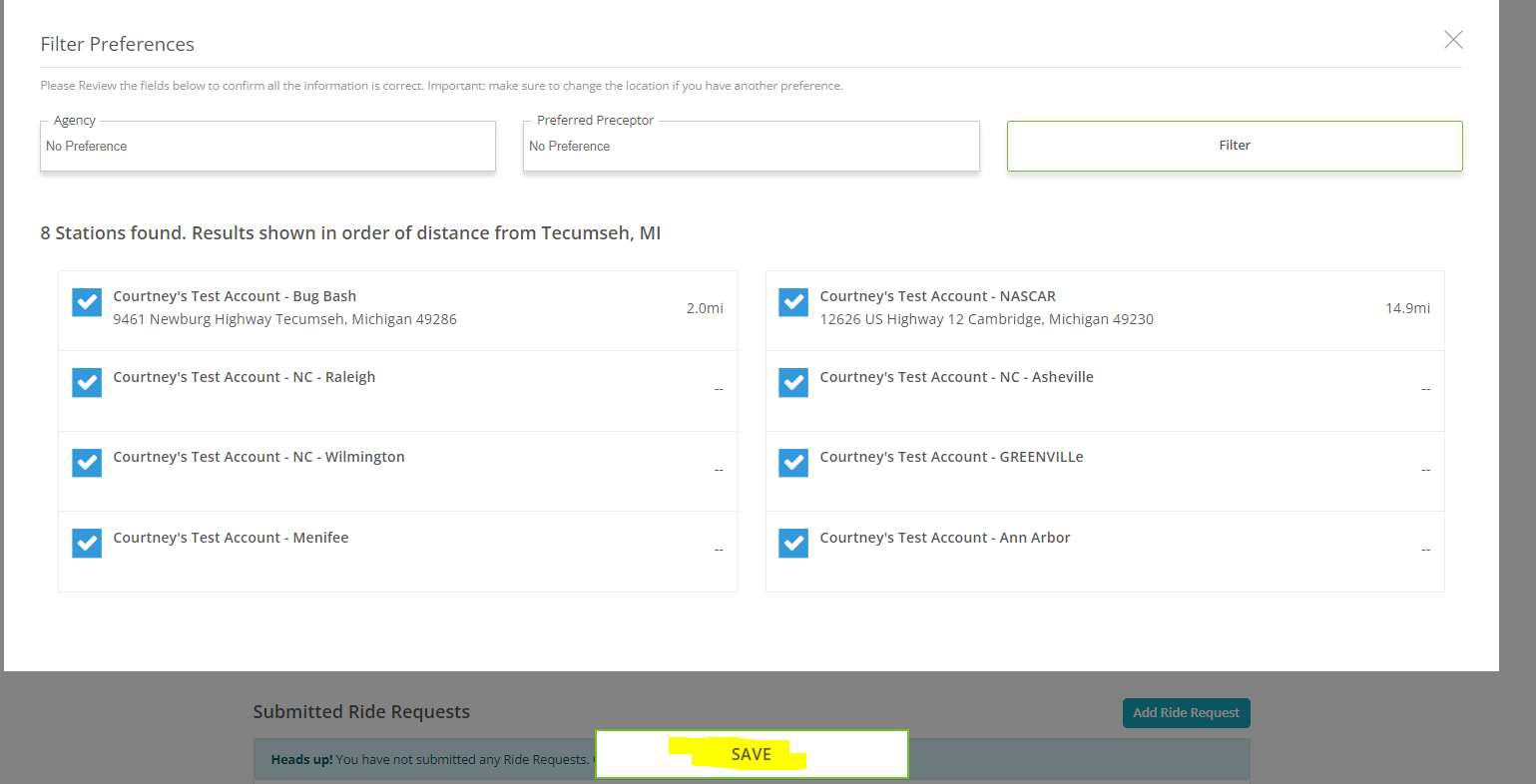 Select stations that you would be interested in choosing from and hit ‘Save’.