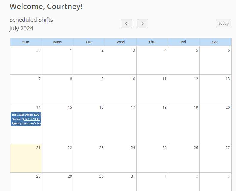 Step 5: A calendar will appear with available shifts to choose from. Click on the shift you are