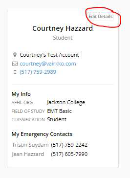 - If you need to make changes to your contact information, select ‘Edit Details’ from your