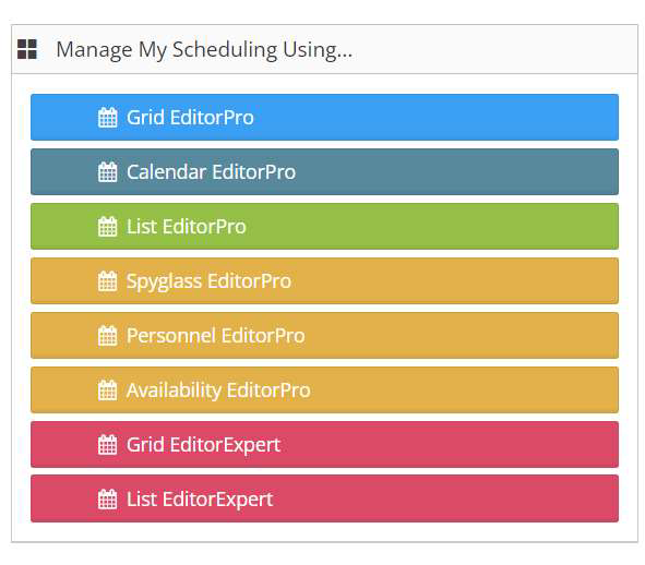 Step 4: Select either the ‘Grid Editor’ or ‘Calendar Editor’ from the scheduling launch pad.