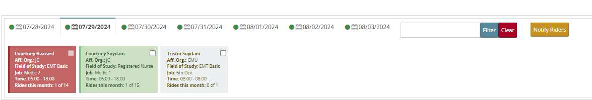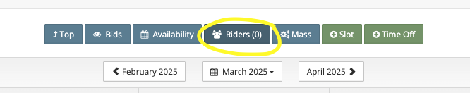 Step 5: Click on ‘Riders’ at the top of the schedule editor. The number in parentheses represents the current number of ride requests pending for the displayed time period.