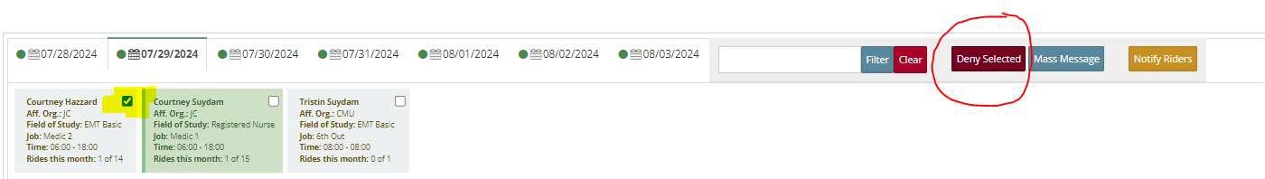 Click on the blue button to make edits to the third ride or deny it.