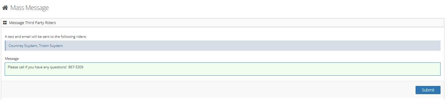 Step 9: If you need to send a message to riders, checkmark the box in the corner and then