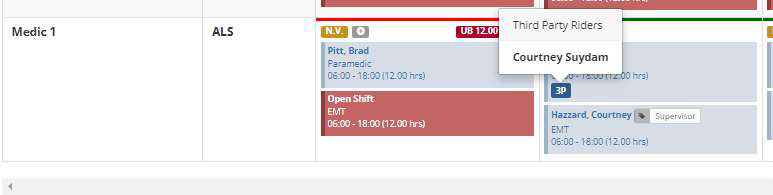 Step 10: To edit an existing scheduled 3rd ride. Click on the ‘3P’ Icon on the shift.
