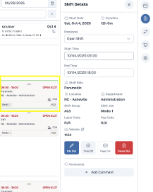 • Click on a shift to view shift details and make quick edits