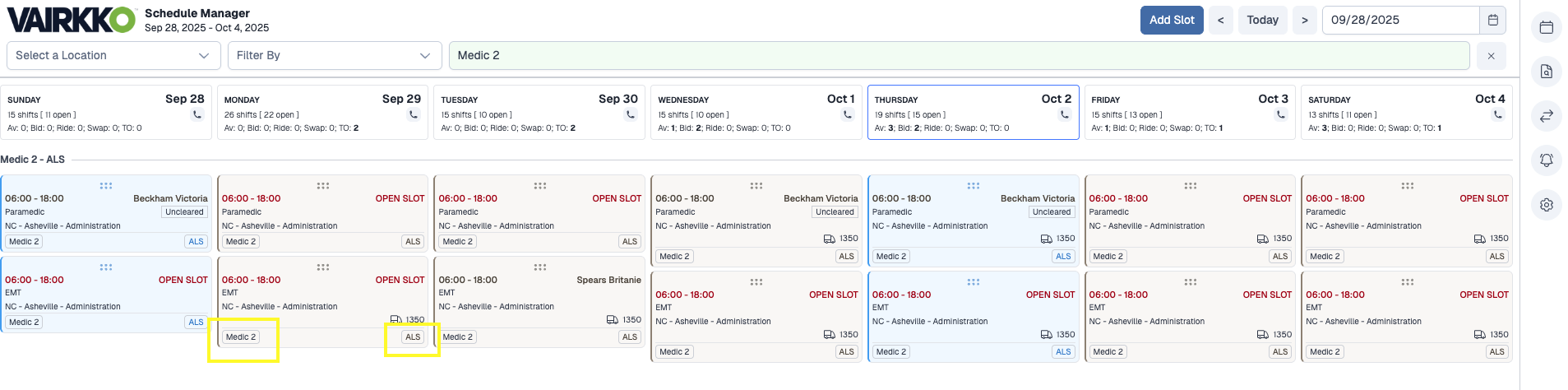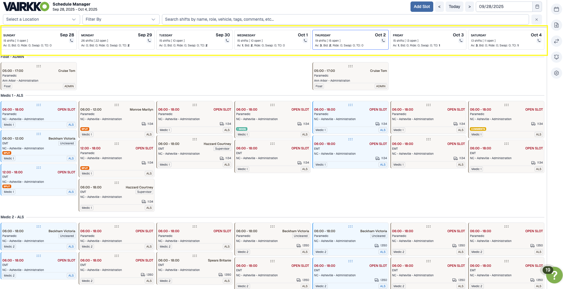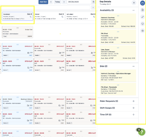 • Drag and drop availability or bids to place users in open shifts. View swaps, or approve time off requests