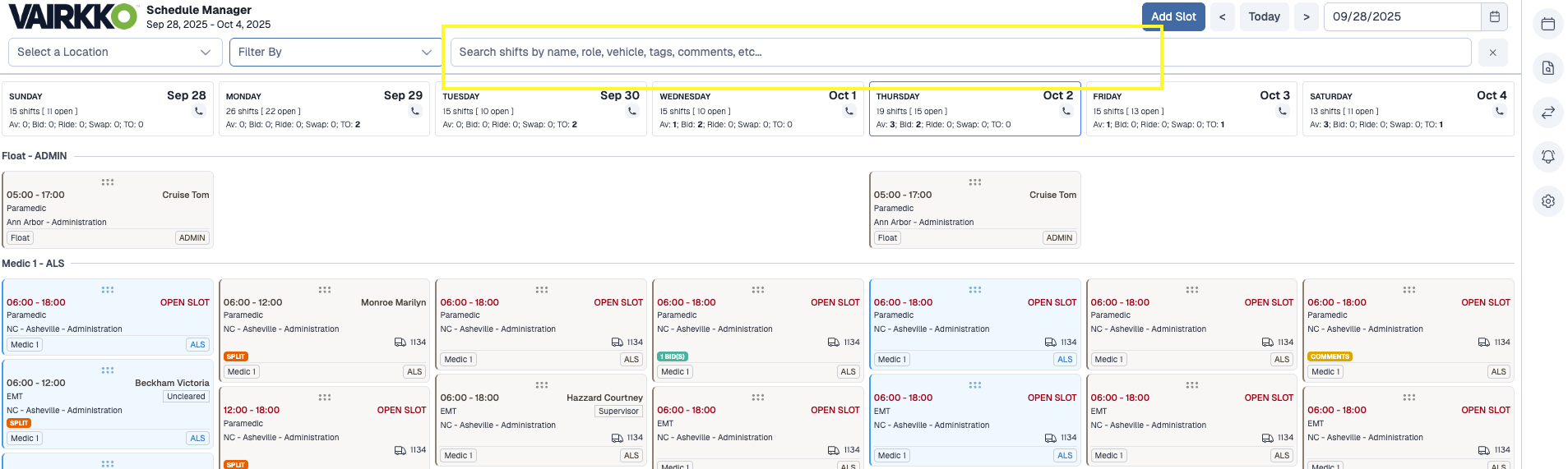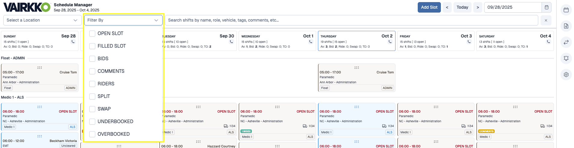 The Schedule Manager offers multiple filtering tools to help you quickly locate specific shifts, jobs, or locations.